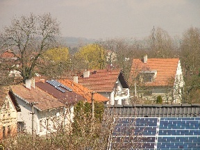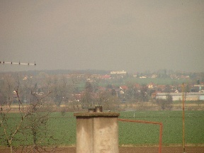 Vyhled na BydLo - podlouhla budova vzadu